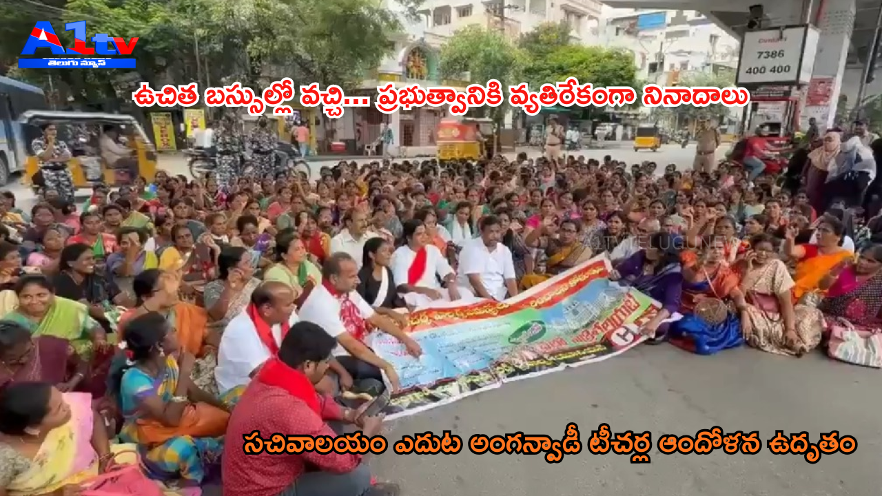 ఆందోళనలో భాగంగా, తెలంగాణ వ్యాప్తంగా వచ్చిన అంగన్వాడీ టీచర్లు హైదరాబాదులోని సచివాలయం ఎదుట రోడ్డుపై బైఠాయించి నినాదాలు చేశారు. తమ డిమాండ్లను ప్రభుత్వం పట్టించుకోవడం లేదని, సమస్యలను పరిష్కరించకుండానే అరెస్టులు చేయడమేమిటని వారు తీవ్ర ఆగ్రహాన్ని వ్యక్తం చేశారు. ప్రత్యేకత ఏమిటంటే, రేవంత్ రెడ్డి ప్రభుత్వం ప్రవేశపెట్టిన ఉచిత బస్సు సేవను ఉపయోగించి ఆందోళనకు వచ్చిన ఈ కార్యకర్తలు అదే ప్రభుత్వానికి వ్యతిరేకంగా నినాదాలు చేయడం ఆసక్తికరంగా మారింది.