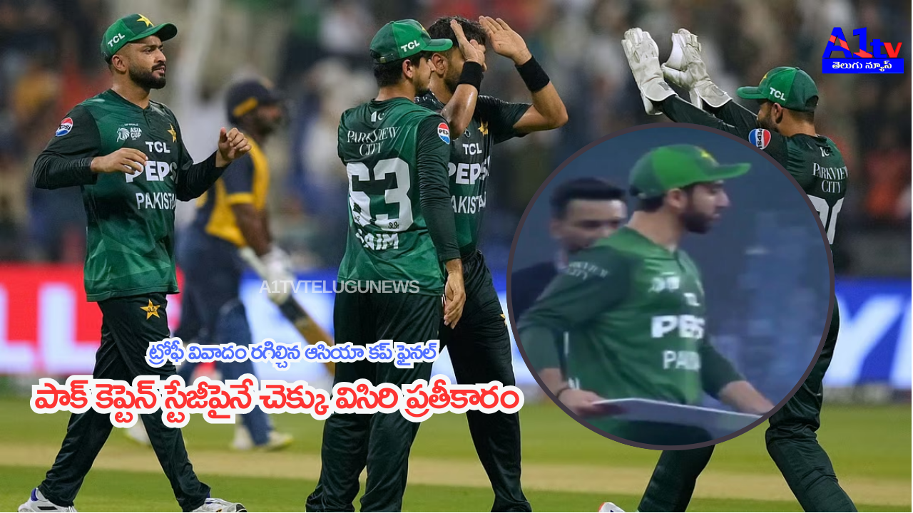ట్రోఫీ వివాదం రగిల్చిన ఆసియా కప్ ఫైనల్ – పాక్ కెప్టెన్ స్టేజీపైనే చెక్కు విసిరి ప్రతీకారం