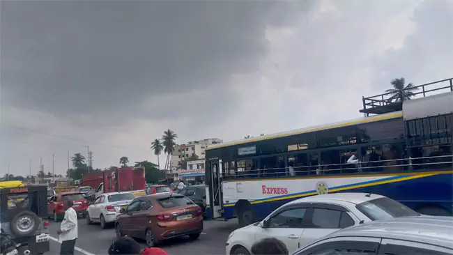జగన్ కాన్వాయ్ కారణంగా పెనమలూరులో ట్రాఫిక్ స్తంభన
