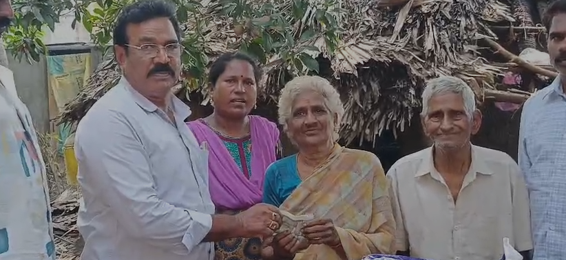 ఇంటి వస్తువులన్నీ కాలిపోవడంతో ఆ వృద్ధ దంపతులు కట్టుబట్టలతో మిగిలారు. బాధితులను ఆదుకునేందుకు కుడుపూడి శివన్నారాయణ రూ. 5,000 నగదు, బియ్యం మరియు నిత్యావసర సరుకులు అందజేశారు.