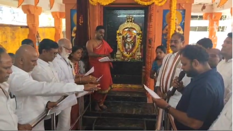 మంగళవారం, రమేష్ సమక్షంలో ప్రవీణ్ మరియు ఇతర సభ్యులు ఆలయ ఈవో ఆంజనేయులతో ప్రమాణ స్వీకారం చేశారు.