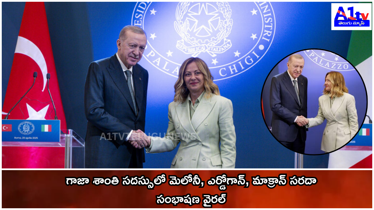 ఈజిప్టులోని షార్మ్ ఎల్-షేక్లో జరిగిన గాజా శాంతి సదస్సులో టర్కీ అధ్యక్షుడు రెసెప్ తయ్యిప్ ఎర్డోగాన్, ఇటలీ ప్రధాని జార్జియా మెలోనీ, ఫ్రాన్స్ అధ్యక్షుడు ఇమ్మాన్యుయెల్ మాక్రాన్ మధ్య ఆసక్తికర సంభాషణ సాగింది. అనధికారికంగా మాట్లాడుకుంటున్న సమయంలో ఎర్డోగాన్ మెలోనీని చూసి, “మీరు బాగున్నారు కానీ పొగతాగడం మాత్రం మానేయండి” అని సూచించారు.