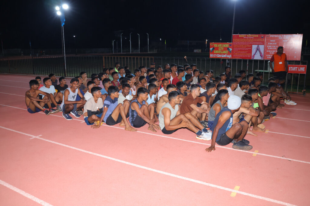 ప్రమాణపత్రాల పరిశీలన అనంతరం అభ్యర్థులను అర్ధరాత్రి (12 గంటలకు) హ్యాండ్బాల్ కోర్ట్లో ఏర్పాటు చేసిన బార్కోడ్ ఏరియాకు తరలిస్తారు. అక్కడినుంచి రన్ బ్యాచ్ వెయిటింగ్ ఏరియాకు పంపించి, ఆ తర్వాత సింథటిక్ ట్రాక్లో రన్నింగ్ టెస్ట్ నిర్వహిస్తారు.